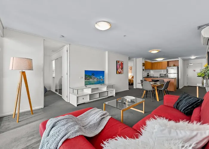 Con piscina cubierta, el Exclusive Stays - The Summit está situado en Melburne, a 11 minutos a pie de la Catedral de San Pablo de Melbourne. Este apartamento de 110 m² ofrece cunas y tronas para los huéspedes con familias y se encuentra a poca distancia del Casino Crown.